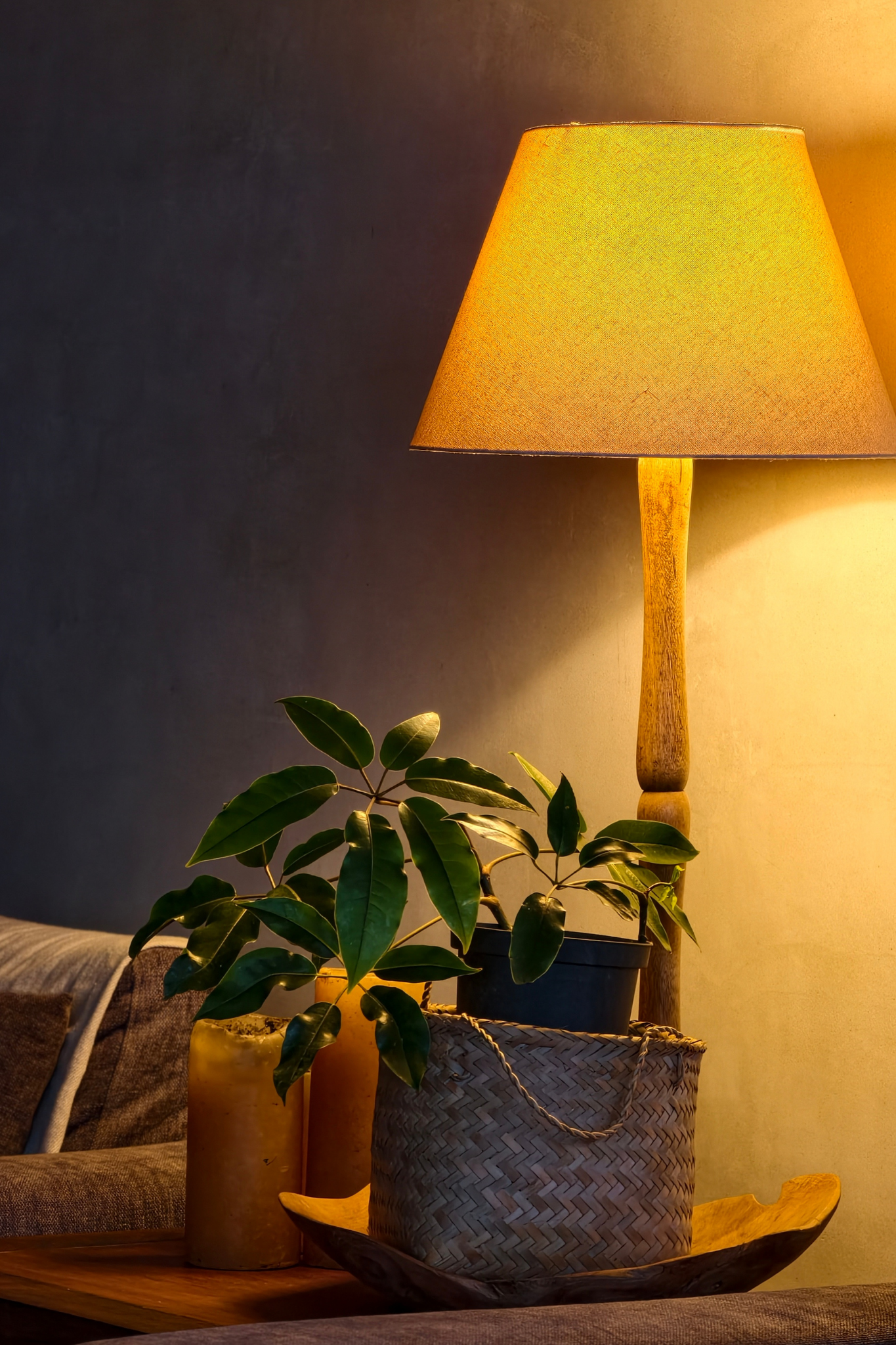 One well-placed lamp with warm light can completely change how a room feels at night. Softer lighting tells your nervous system it’s okay to exhale.